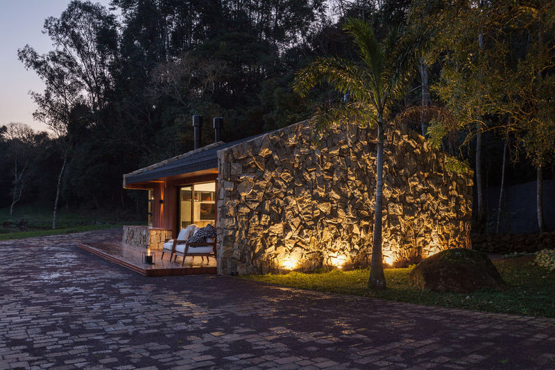 Архитекторы студии Cadi Arquitetura вдохновлялись природой места и деревенским стилем постройки, поэтому в строительстве использовали много дерева, а также камней Джакаранды в их естественном состоянии, то есть без раствора между ними в кладке.