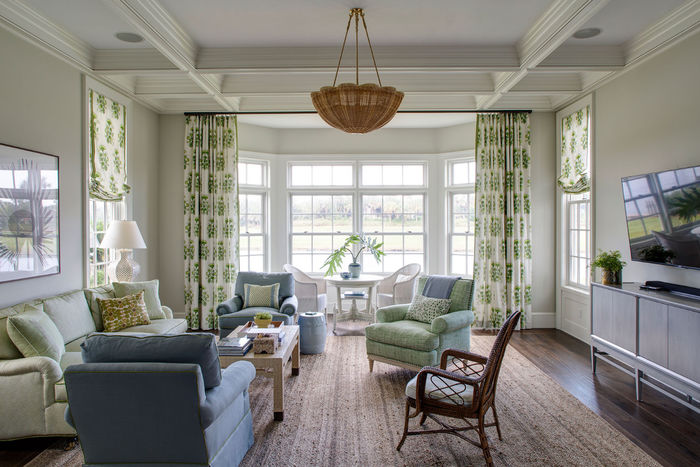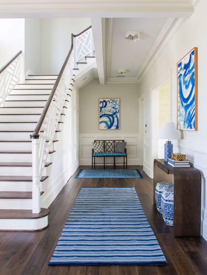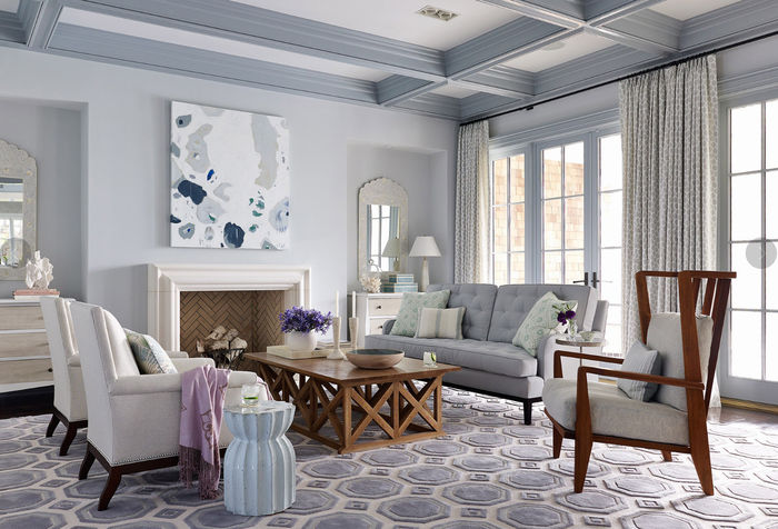 Этот особняк расположен в Джексонвилле, штате Флорида. Он светлый и женственный, потому что заказчика – женщина, обожающая белый, синий, голубой и все сочные оттенки, дополняющие сине-голубой цвет. Она считала, что синий цвет относится к холодной гамме спектра. И ошиблась!