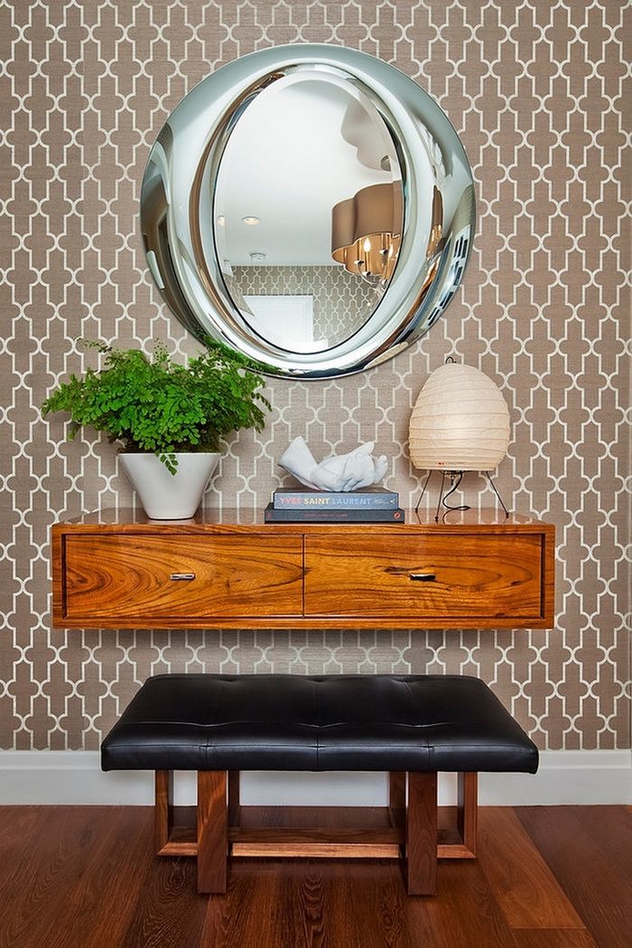 Сочетание темного и светлого дерева, металлической отделки и кожаной обивки создают мгновенное тепло и сложную текстуру в жилом пространстве.